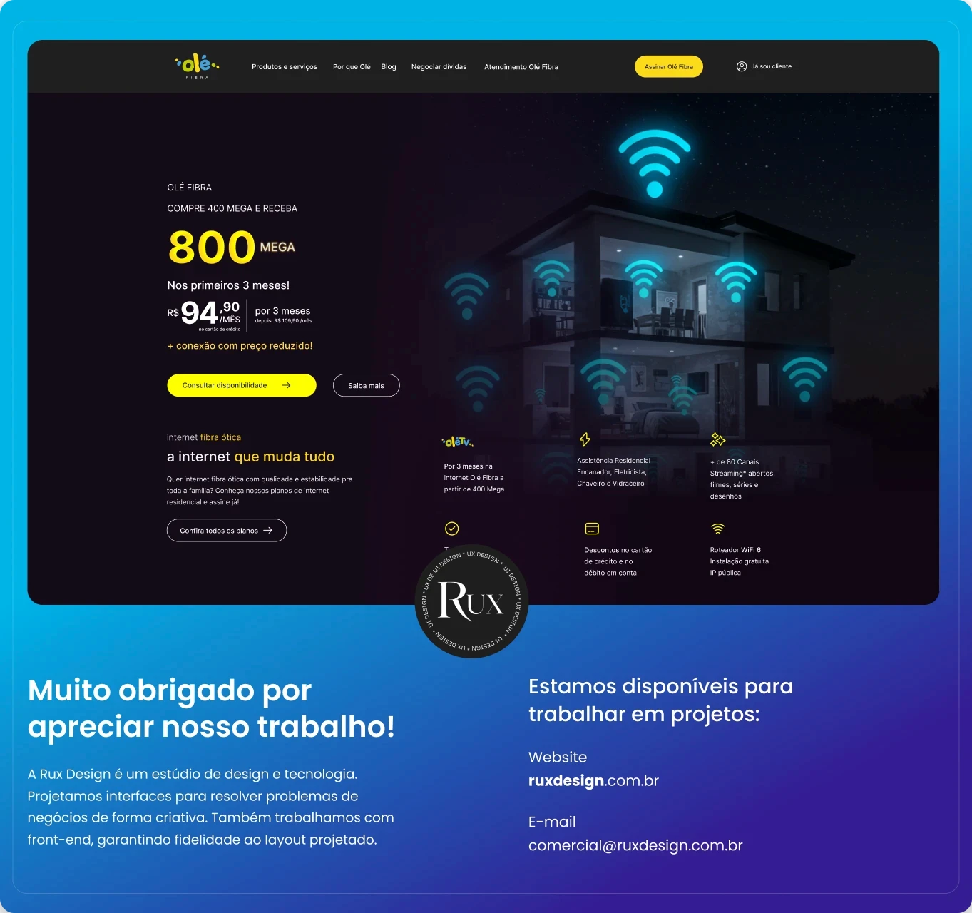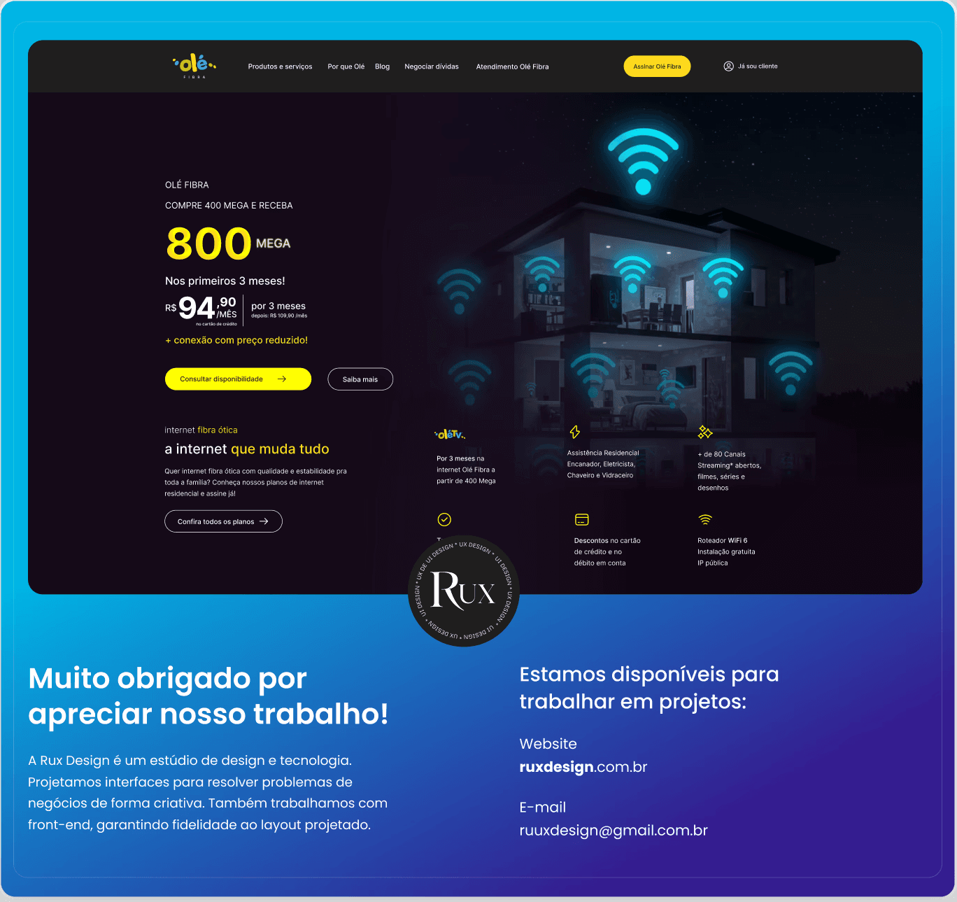 O novo site da Olé Fibra foi reconstruído para entregar uma experiência mais clara, moderna e focada em conversão.